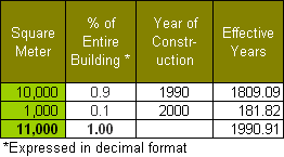 The weighted age of the building is therefore rounded off to 1991.