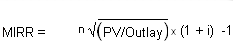 If we use the figures above then the MIRR formula for either project will contain the following values:
